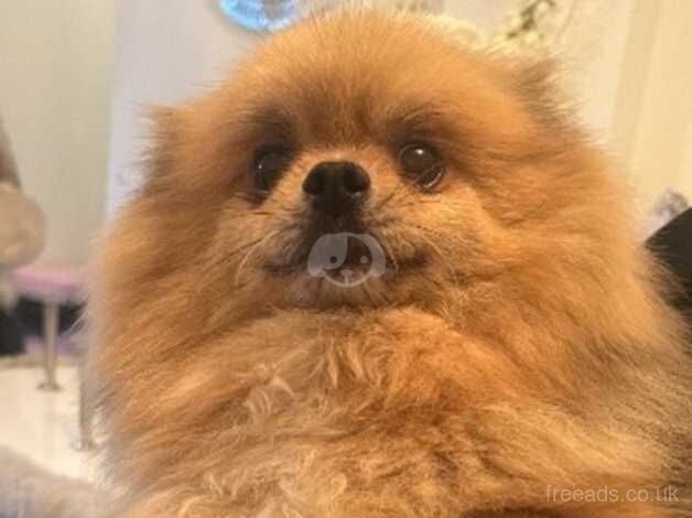 3Beautiful small type white ,kc reg boy 2 years old 1.8 kg Pomeranian He’s proven natural and ai Friendly little boy gets on with everybody change of circumstances £250 stud fee up to date with wormer fleas and injections Or for sale £500