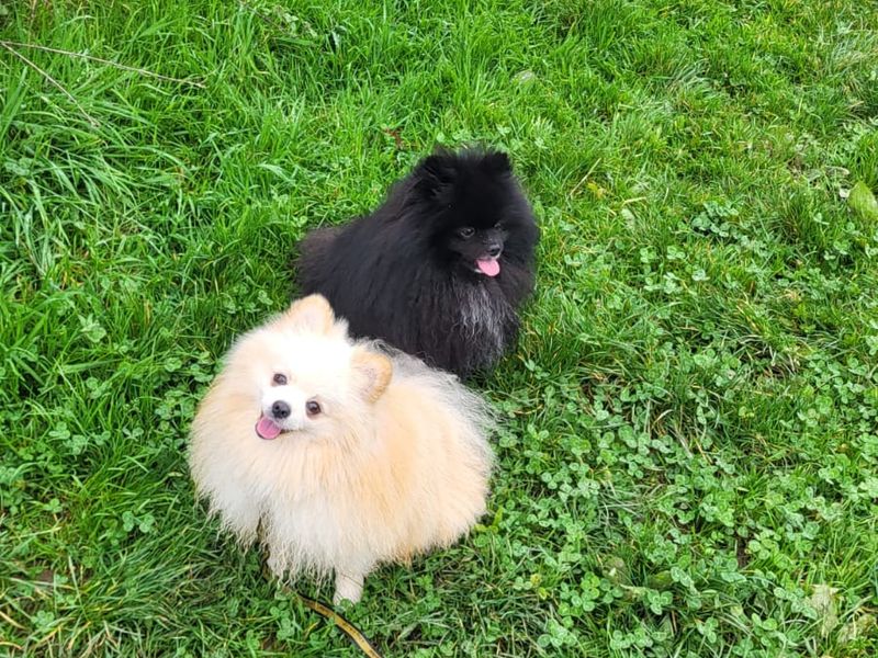 Cloud and Clay are 2 handsome young Poms looking for a wonderful new home together. Cloud is a wonderful, teeny tiny 1 year old Pom boy and so is Clay! They are looking for a home where they can go on little adventures and then chill with their family in the evenings. Cloud can take a little bit to warm up to new people, however a nice walk and he does start to relax! Cloud will eventually want to sit in your lap and have all the fuss. Cloud enjoys playing with balls and tug toys but, the thing he loves most is his best friend Clay! Clay is a little more confident and leads the way.