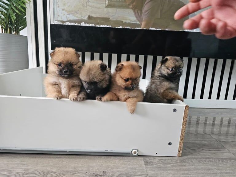 My pomarian has had 4 beautiful full breed puppies and they are going to be ready to go to good homes 3 boys and 1 girl, 2 sable and 2 tricolourThanks