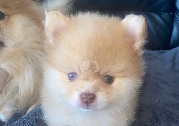 Here I have my beautiful litter of Pomapoo puppies from my family pet foxy! We have two male and one female available they have been microchip flead and wormed from two weeks old and health checked can be viewed with mother The puppies are really friendly and used to kids and other pets.Mum is a full Pomeranian with beautiful temperament dad is a toy poodle who have had